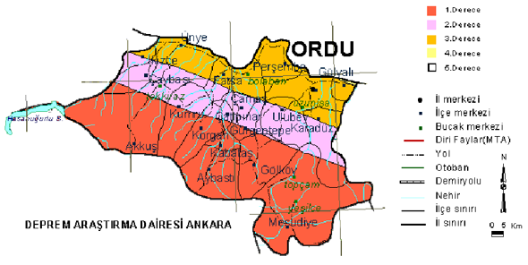 İlçemiz Kuzey Anadolu Fay Hattı’nın hemen kuzeyinde yer alır. MTA Deprem Araştırma Dairesi tarafından hazırlanan Ordu Deprem haritasında Mesudiye 1. Derece deprem kuşağında yer almaktadır.