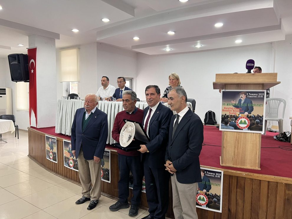 Mesudiye Gelişme Vakfı (MEGEV) Başkanımız Salih Erol tarafından 35.Mesudiye Kurultayında eski MEGEV Başkanı ve Dünya Demokrasi Yürütme Kurulu Başkanı olarak yapmış olduğu katkı ve başarılardan mütevellit Prof. Dr. Aziz Ekşi’ye plaket taktim edilmiştir.Plaketi MEGEV Başkanımız Salih Erol ile birlikte Mesudiyeliler Dernek Başkanı Erdal Yılmaz, Oktay Ekşi ile birlikte vermişlerdir.